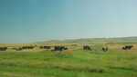 North Dakota Montana Border Country. "More furnace heat, into some badlands, and we cross the border into Montana. A sign by the road announces it. .. Sylvia waves her arms up and down and I beep the horn in response, but when I look at the sign my feelings are not jubilant at all. For me its information causes a sudden inward tension that can’t exist for them. They’ve no way of knowing we’re now in the country where he lived. .. All this talk so far about classic and romantic understanding must seem a strangely oblique way of describing him, but to get at Phædrus, this oblique route is the only one to take.“ 4Mi W of Marmarth, ND. has more Scenery and Montana Cows. Some “Badlands” are seen in distance. ************************************ (Photo = 104-0463c ...... ZMM Page = 071 ...... WayPt = 082`|w|' 3070ft)