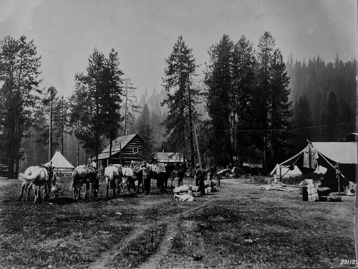 …This Very Old Photo May Show => An Early Historic Photo Of A Pack Horse Campsite, Along A Trail Perhaps Miles Away From Near To Where Andrew Erickson, Sooner Or Later, Built The Original Lochsa Lodge.