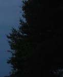 Brownlee Campground ~18 miles Northwest of Cambridge, ID. If you look between the tree leaves at right you can see what looks like fog. But, look closely, it is the relatively smooth light-green (with some brown) of the nearly barren “bluff high above the draw we’re in.“