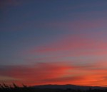 ….“The orange turns to dull bronze light and continues to show what it has shown all day long, but now it seems to show it without enthusiasm. Across those dry hills, within those little houses in the distance are people who’ve been there all day long, going about the business of the day, who now find nothing unusual or different in this strange darkening landscape, as we do. If we were to come upon them early in the day they might be curious about us and what we’re here for. But now in the evening they’d just resent our presence. The work day is over. It’s time for supper and family and relaxation and turning inward at home.