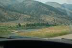 .. The river valley traveled, is at first, a terrace which is level and relatively wide, with the river a meandering still water. Ahead you can see the valley land is narrowing, then ends with the road and the river is now descending, in a narrower canyon, with rapids. Where the canyon is narrow, the river & road are relatively rapidly descending, and thus wind down the canyon, until both begin to level out. At this point, they emerge into another level and relatively wide valley land, much like the previous, with the river a meandering still water river!
