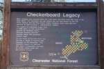 …..3) At Lower Right is the Fourth Sign, which was placed by the USDA National Forest Service, and discusses. as it says On Sign’s Top => “Checkerboard Legacy”, and further discusses what is shown in the Map that is seen on the Sign’s Lower Right. Overall, this sign discusses The History Of National Forest Area Around The Sign.