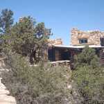 …Colter designed the exterior stonework to convey an indigenous American Indian structure, similar to the ruins of the Ancestral Puebloan dwellings found in the region. Here, she allowed the edge of the canyon and the natural rock outcroppings give form to her multi-level structure that grew out of the edge of the rim.