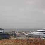 Six Seconds After The Previous Photo, Now We Are Back In The Fog, And See The Bay Boat Dock Facility, Plus A Really Grand Cabin Cruzer.