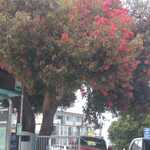 Friday, July 26, 2024: … Minus Low Lying Fog, A Beautiful Flowering Tree At A Santa Cruse Bus Stop, in Front Of Safeway Grocery Store, In Rancho Del Mar Shopping Center, 16 Rancho Del Mar, Aptos, CA.